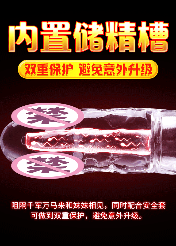 产品特色:1、实心顶部,加长加粗; 2、内置储精通道; 3、与龟头接触部位光滑,贴合无异物感;4、三种尺寸可选,满足不同需要