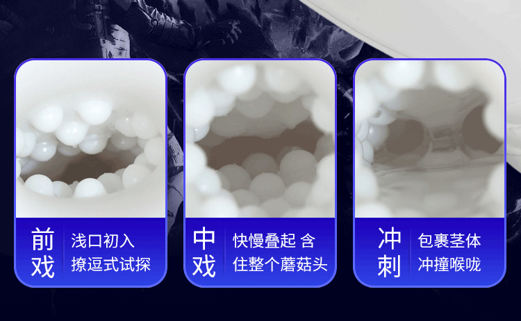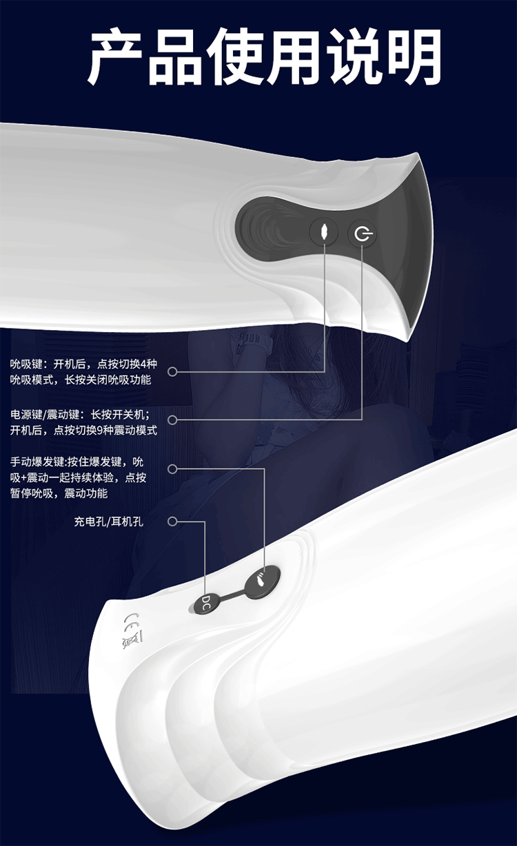 产品特色:4频吮吸,3调吸入,前调:浅口初入,快速吞吐;中调:时快时慢,花式撩拨;后调:深口含住,帝王享受